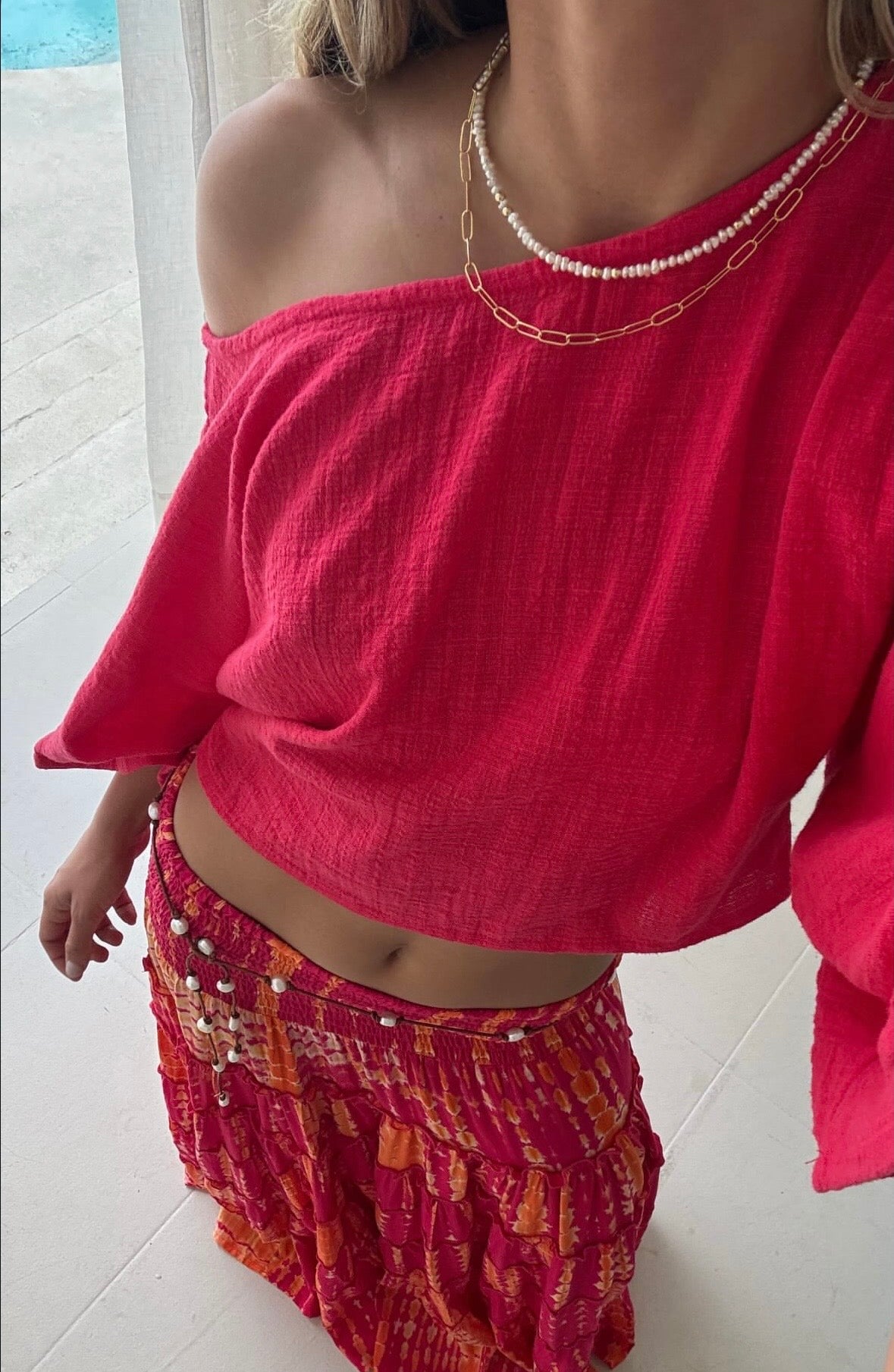 Add Freshwater Pearl Splash Bracelet in Red to the cart