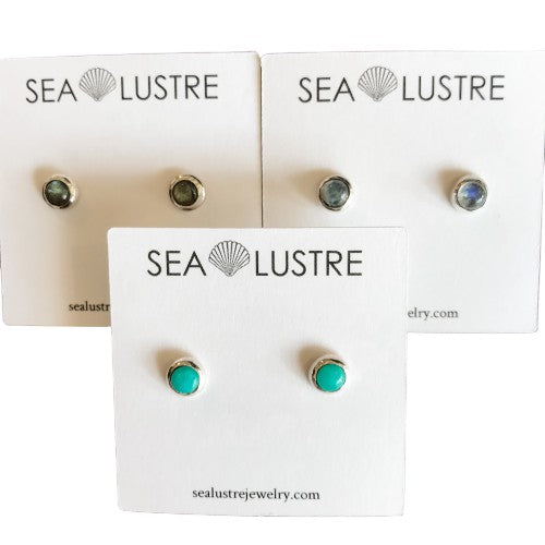 Handcrafted sterling silver bezel set 5 mm gemstone studs