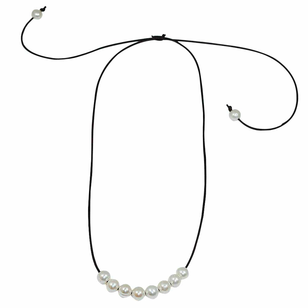Features nine 10 mm - 11 mm freshwater pearls hand tied on naturally dyed leather