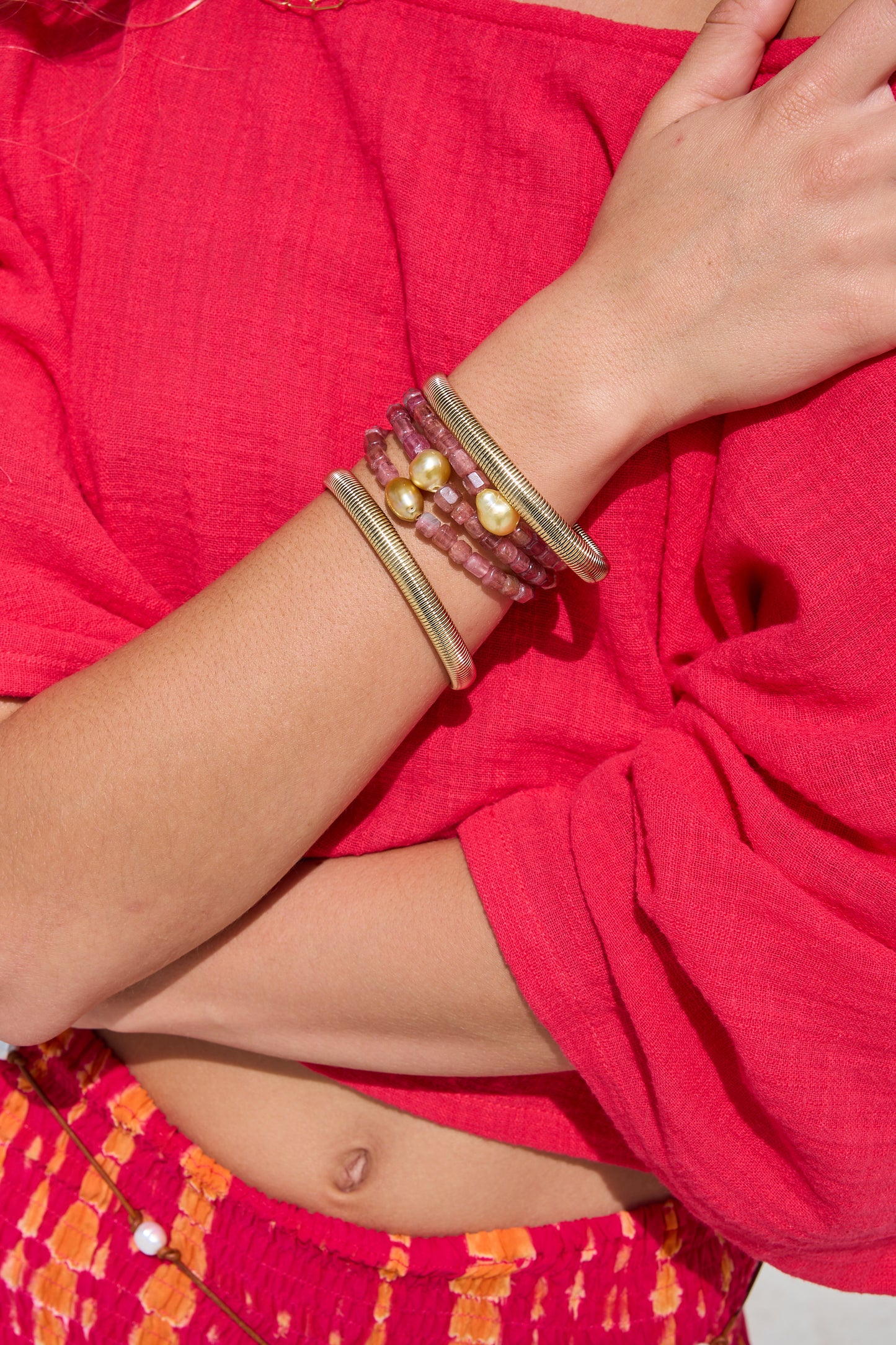 Features one high luster South Sea peal and naturally colored tourmaline beads
