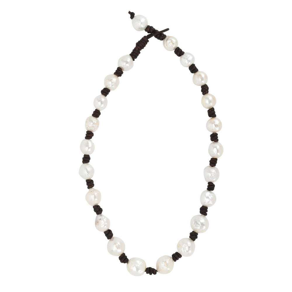 Add Leather & Mother of Pearl Shield Necklace to the cart