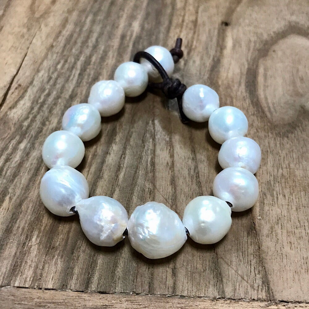 Features large iridescent baroque pearls