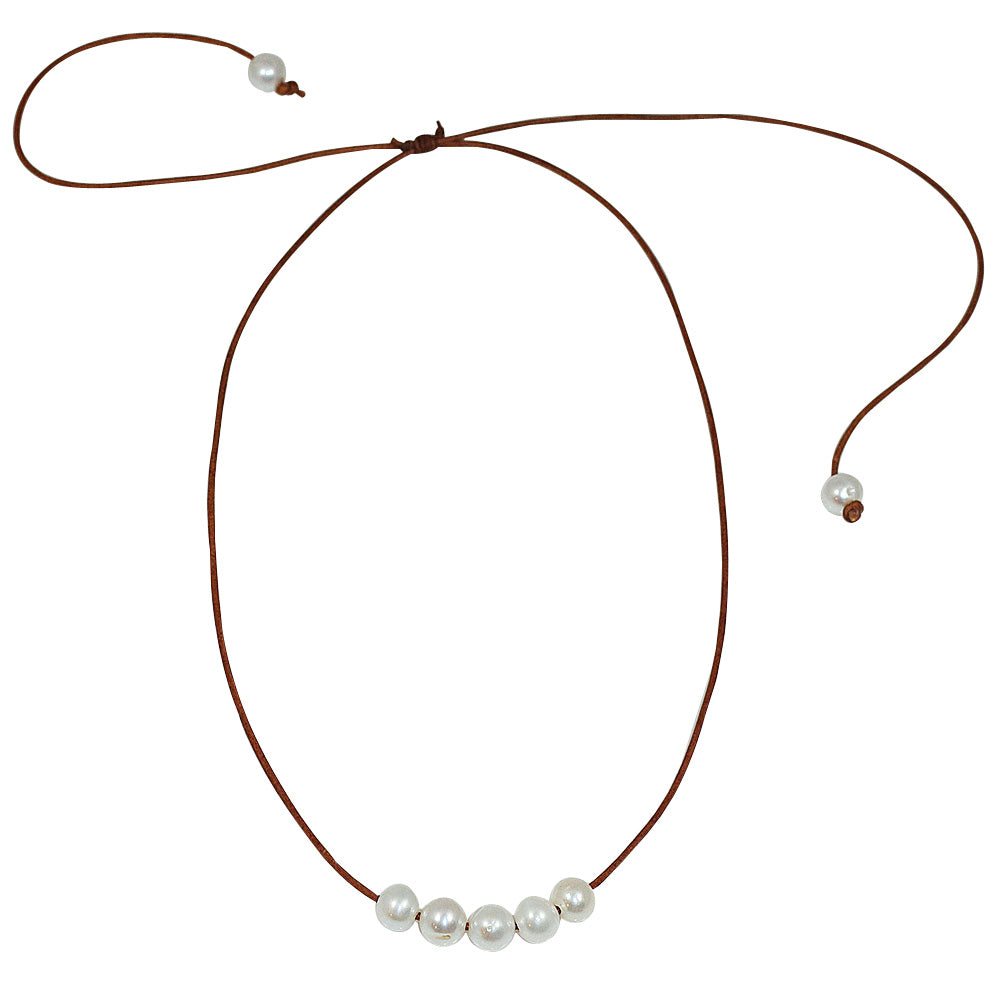 Features five 10 mm - 11mm freshwater pearls hand tied on naturally dyed leather