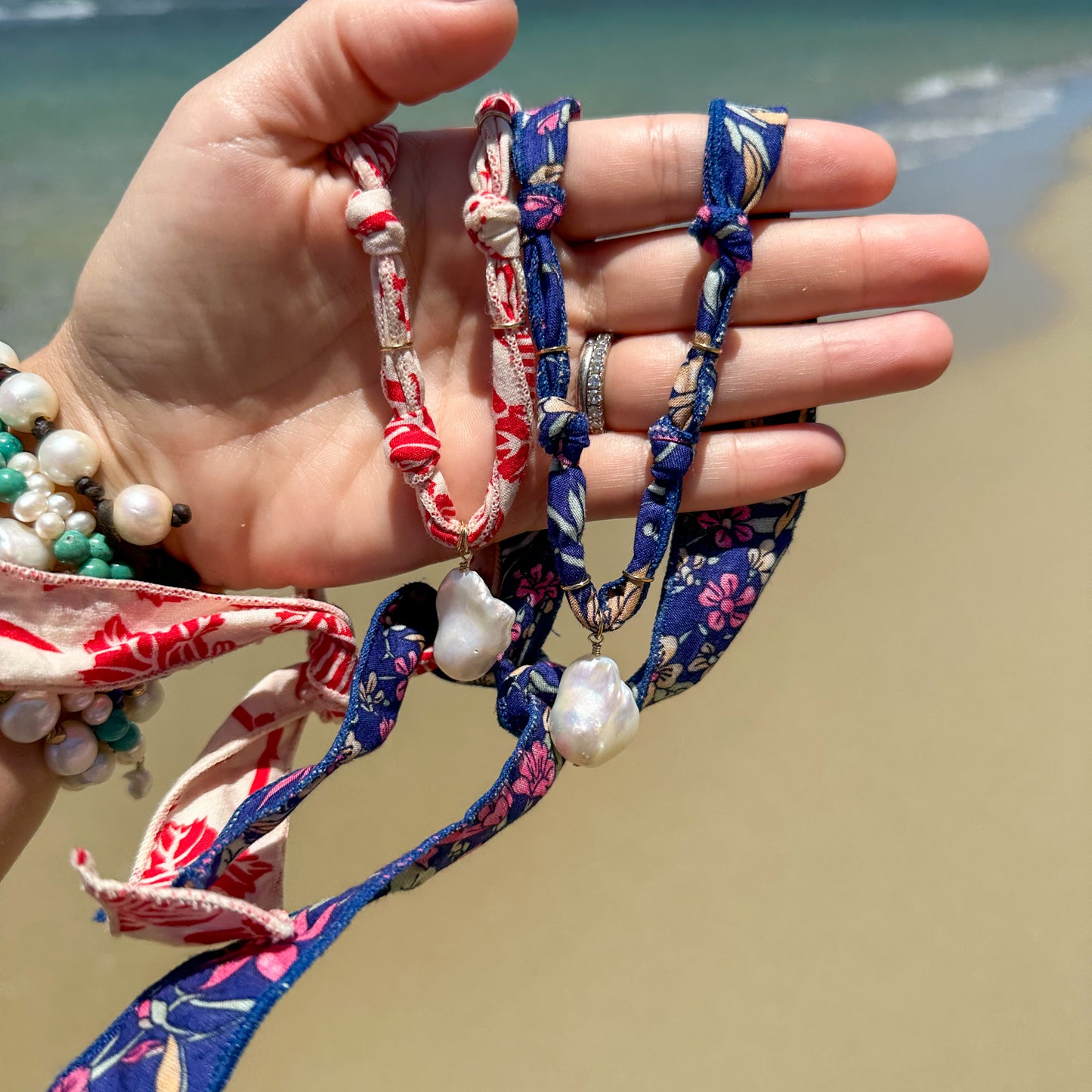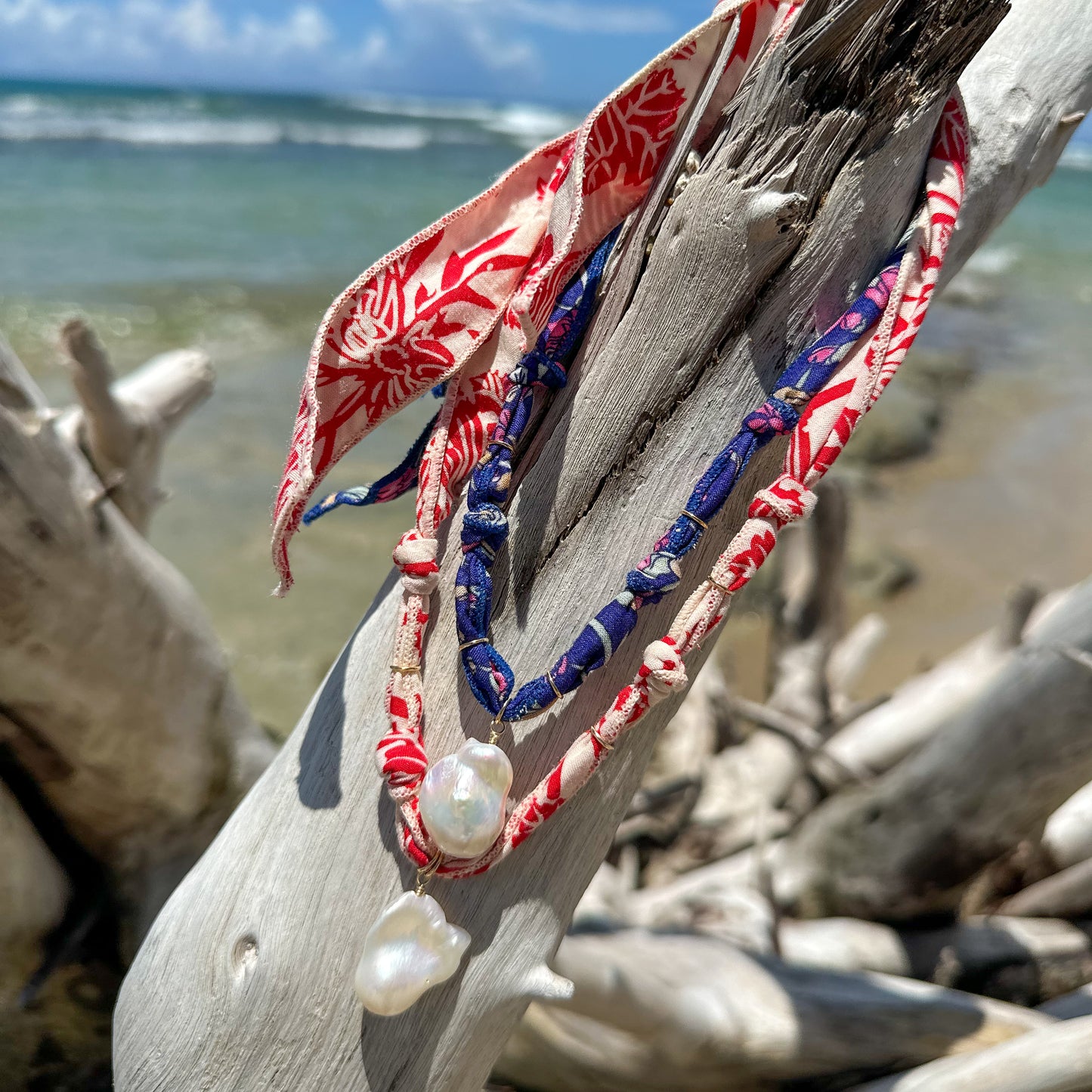 High luster baroque pearl hand-knotted on signature Sea Lustre fabric