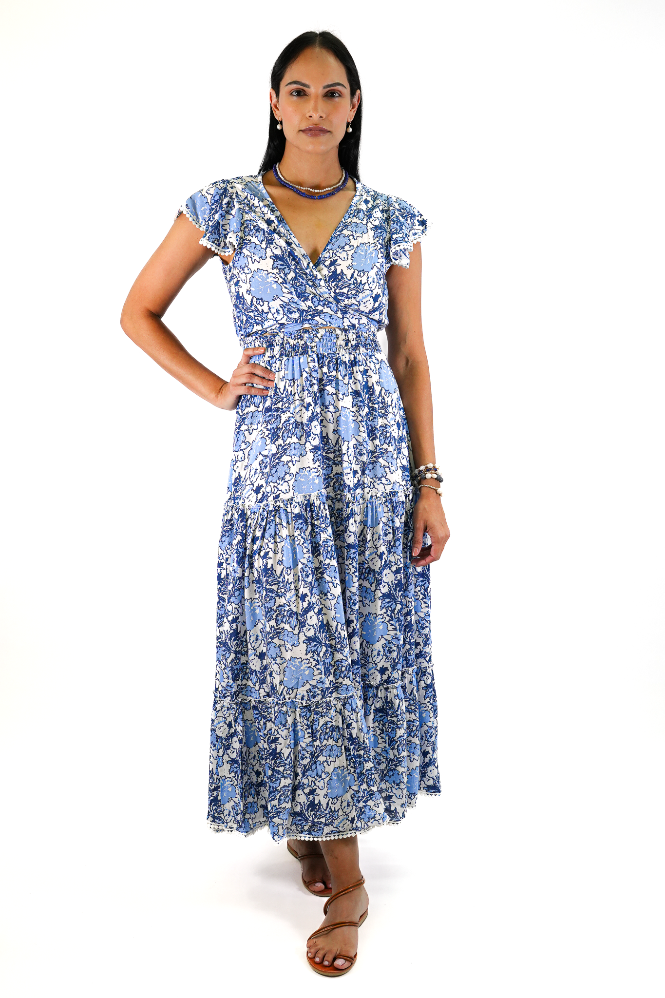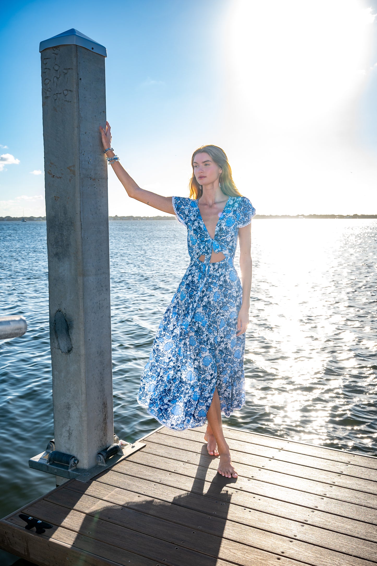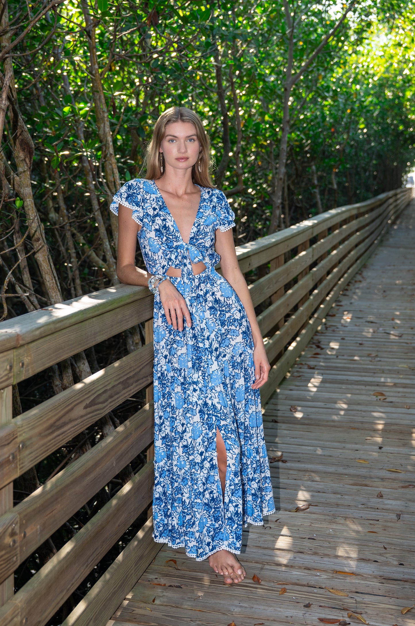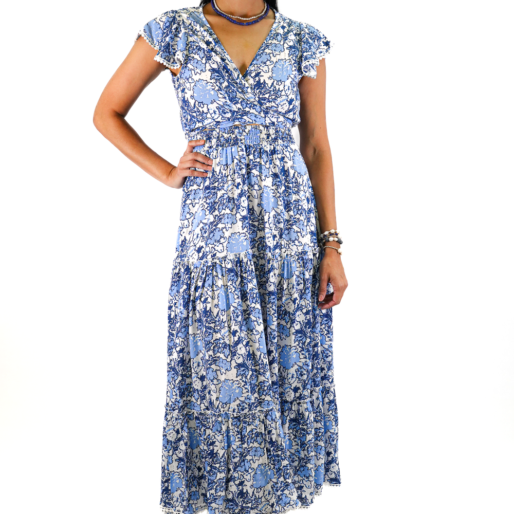 Wrap tie at bust that can be worn tied in the front or wrapped and tied in the back for fuller coverage