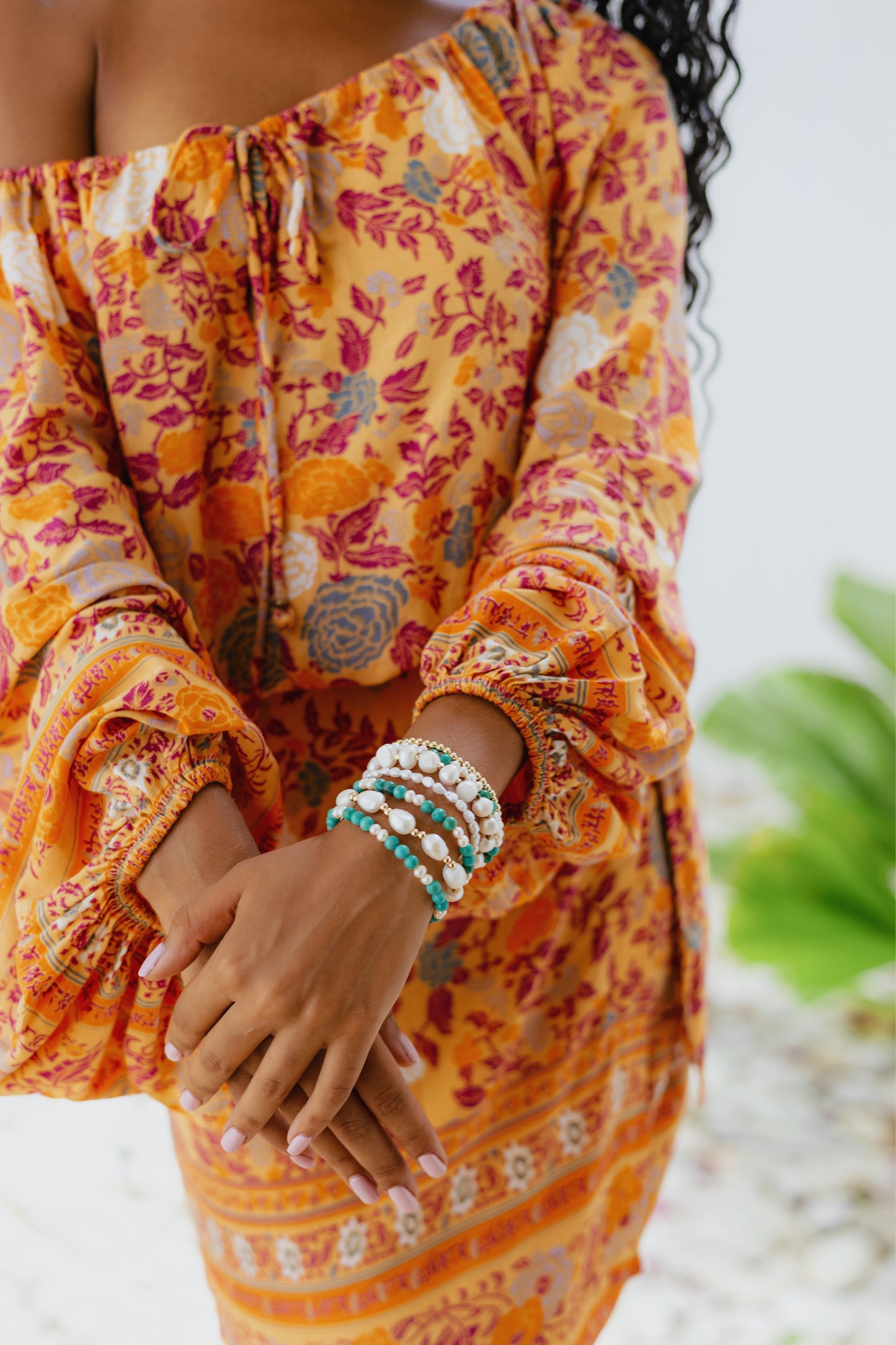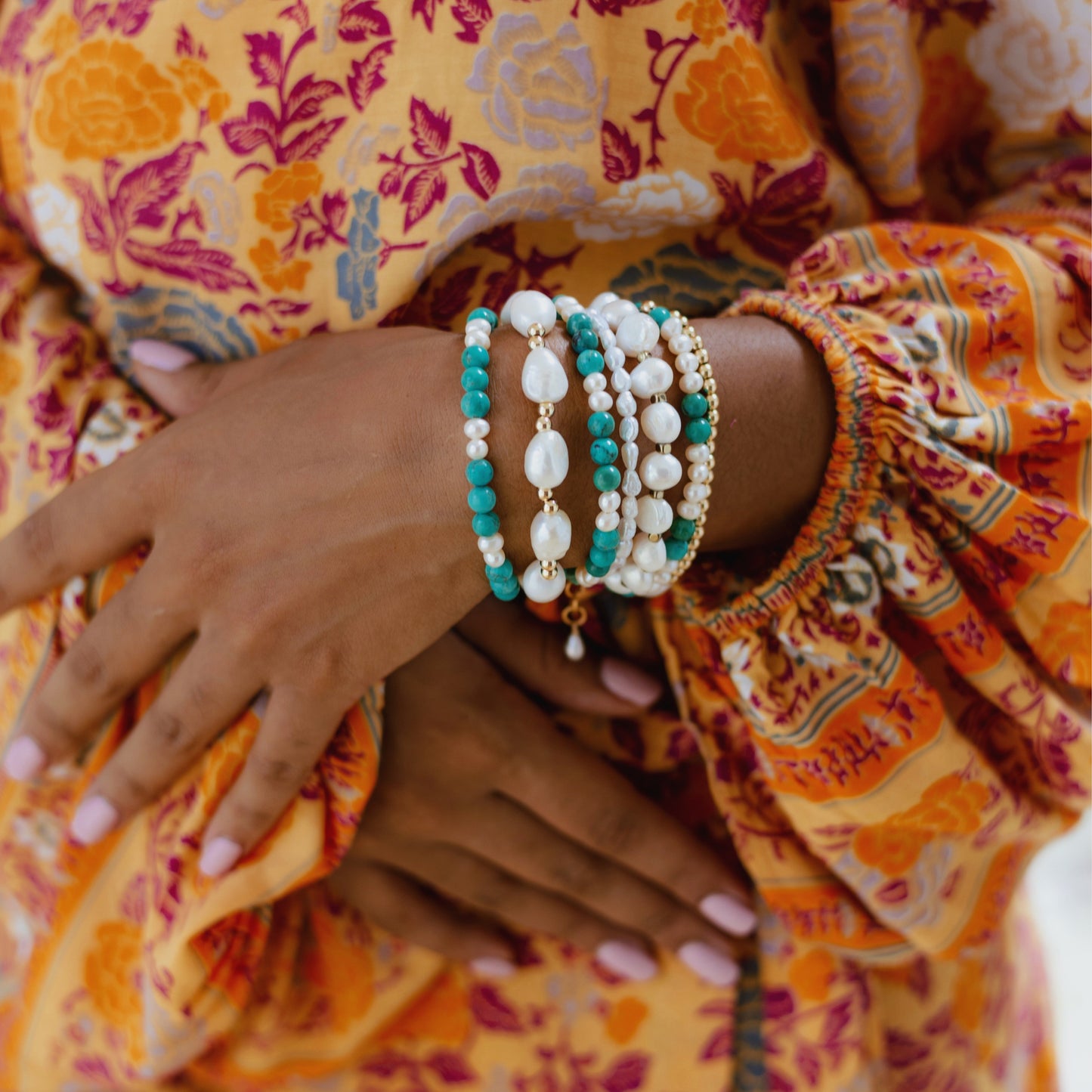 Turquoise & Freshwater Pearl Stretch Bracelet
