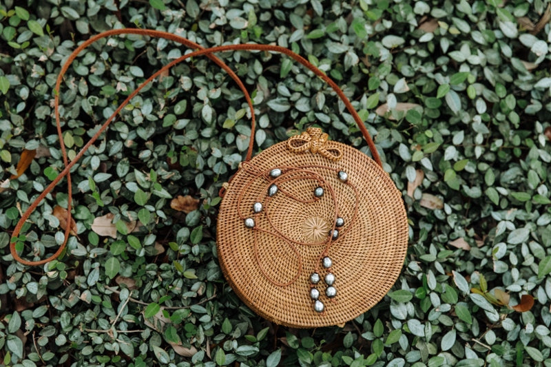 Hand tied on naturally dyed tan leather