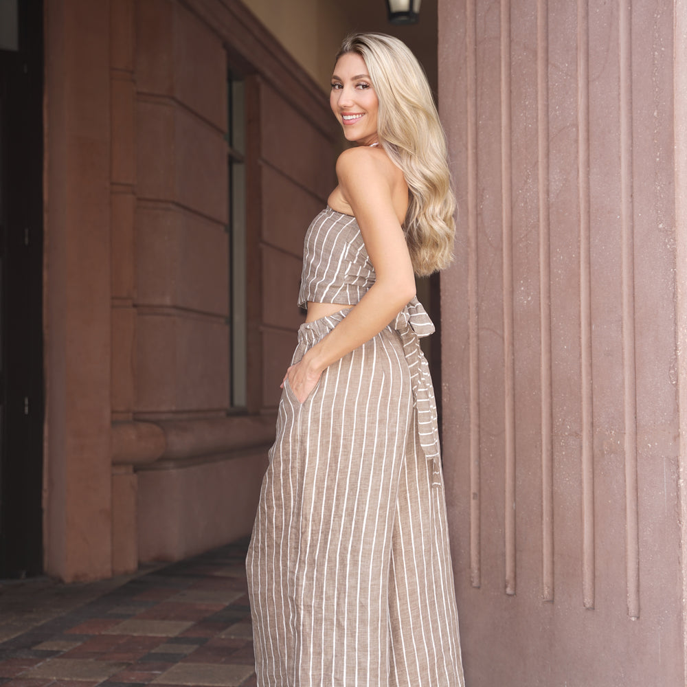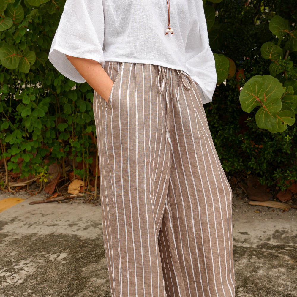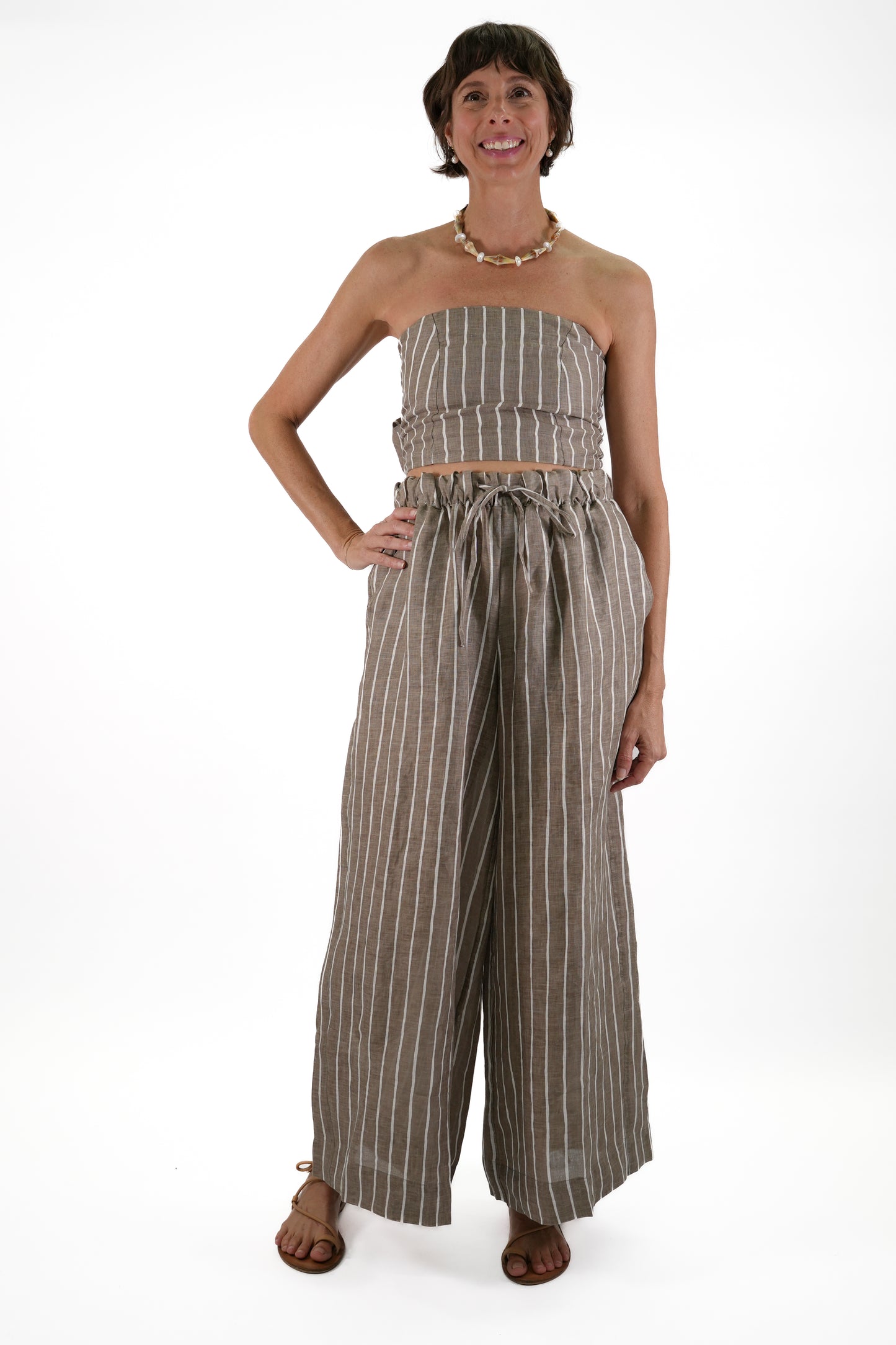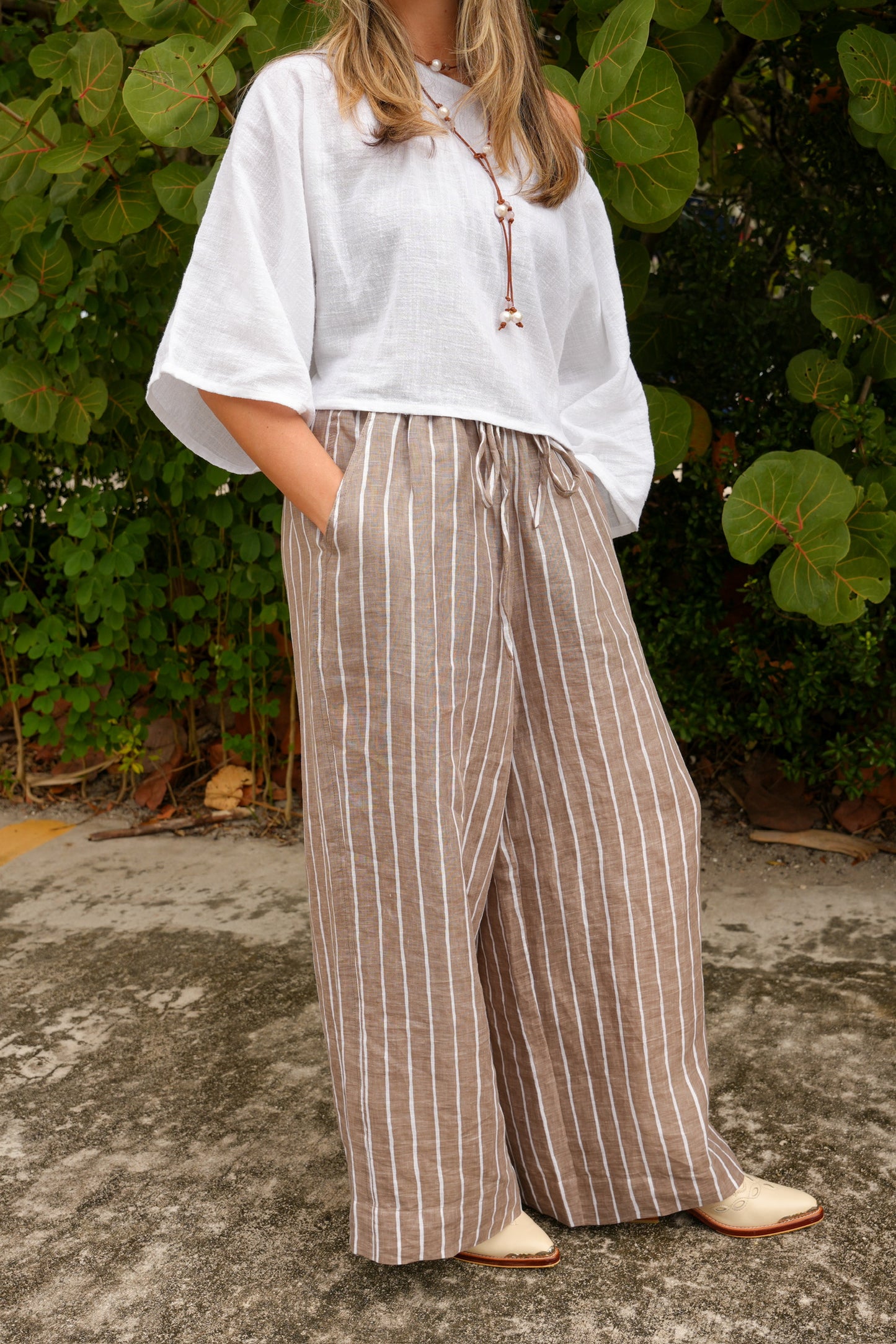 Shown with our Tie the Bown Top in Brown Stripe Linen