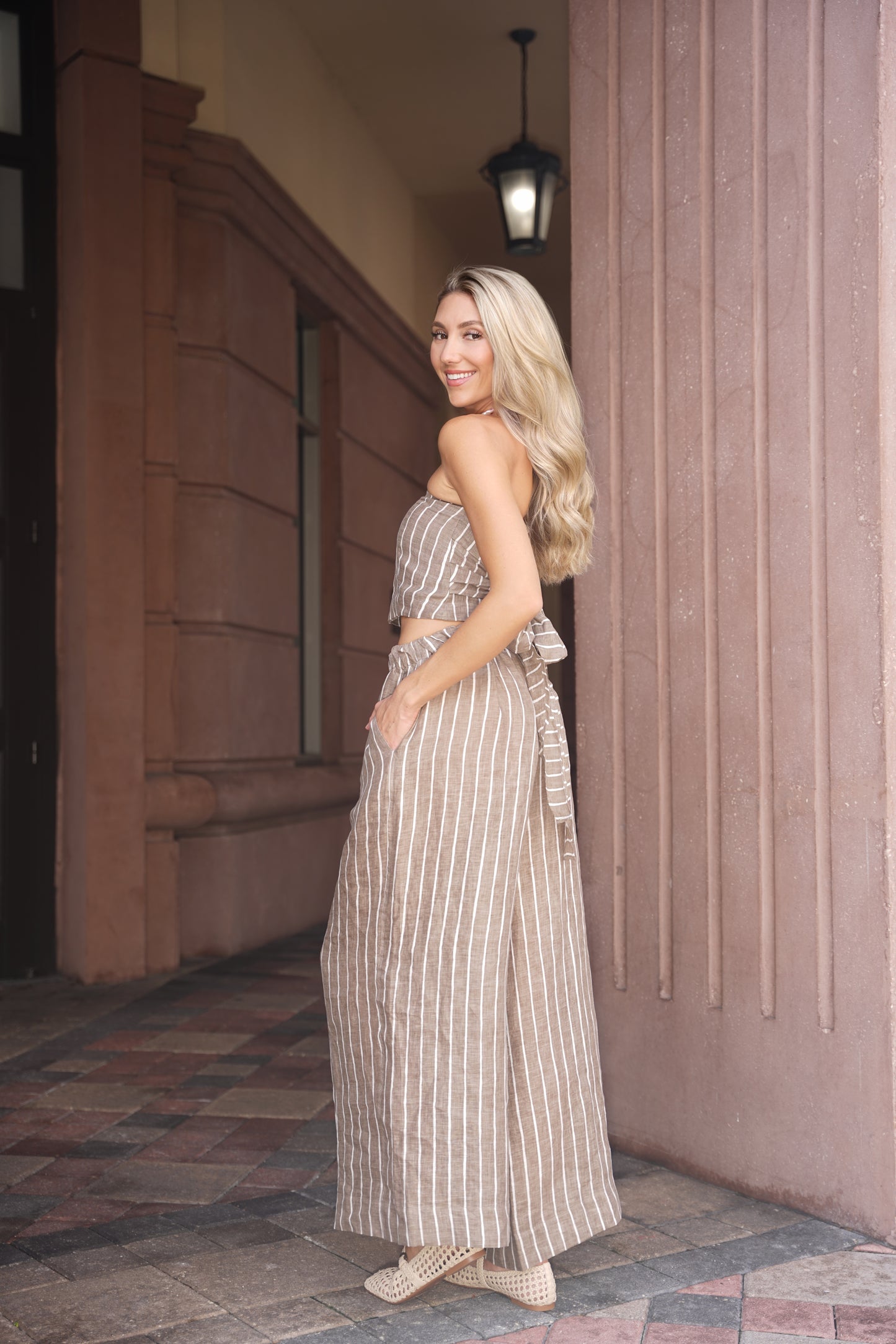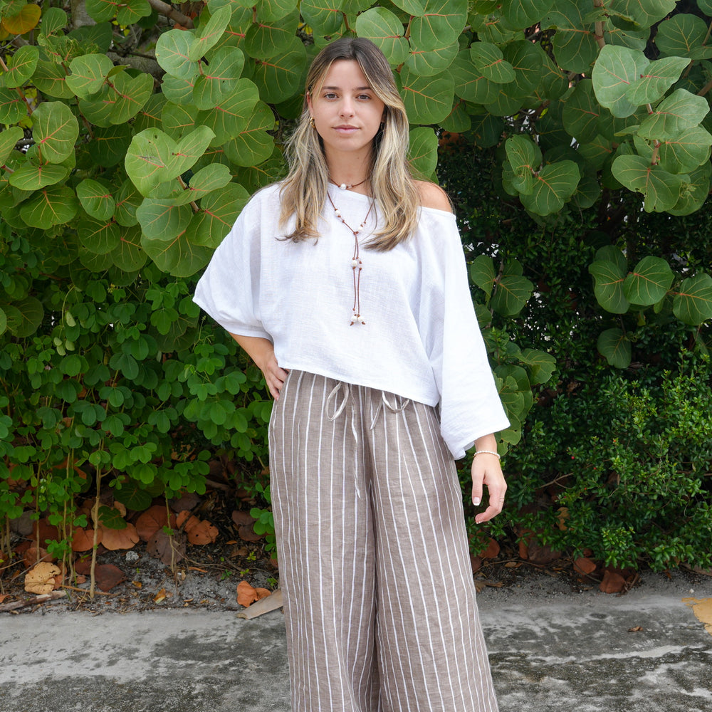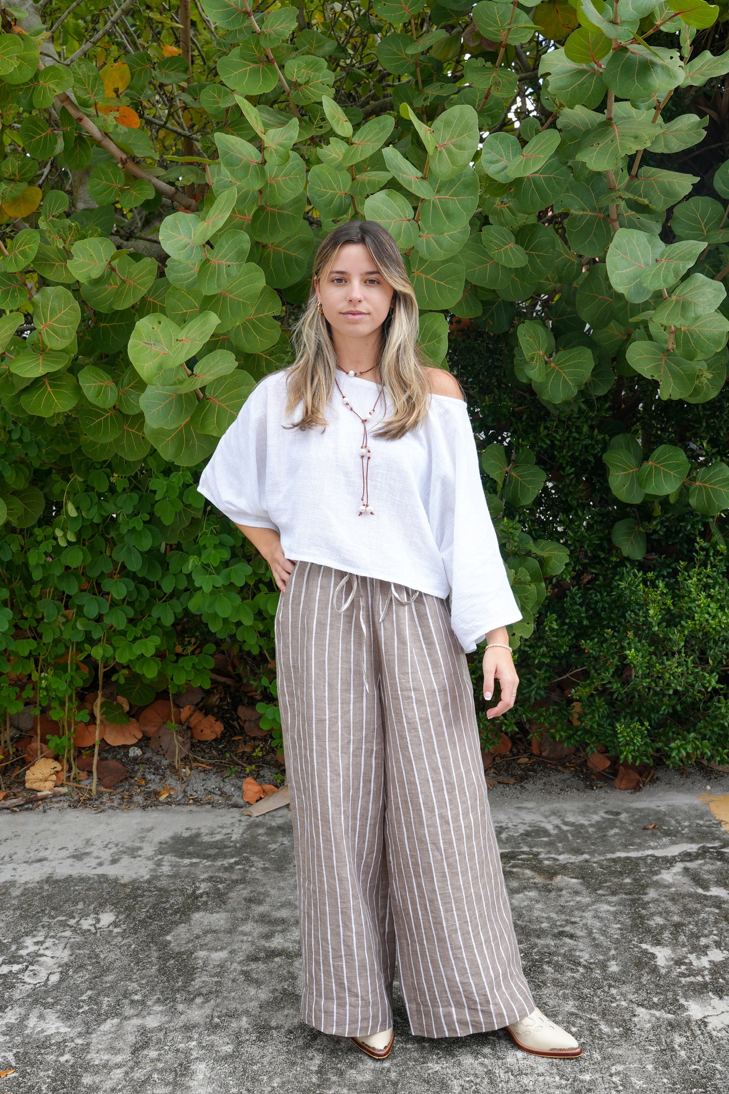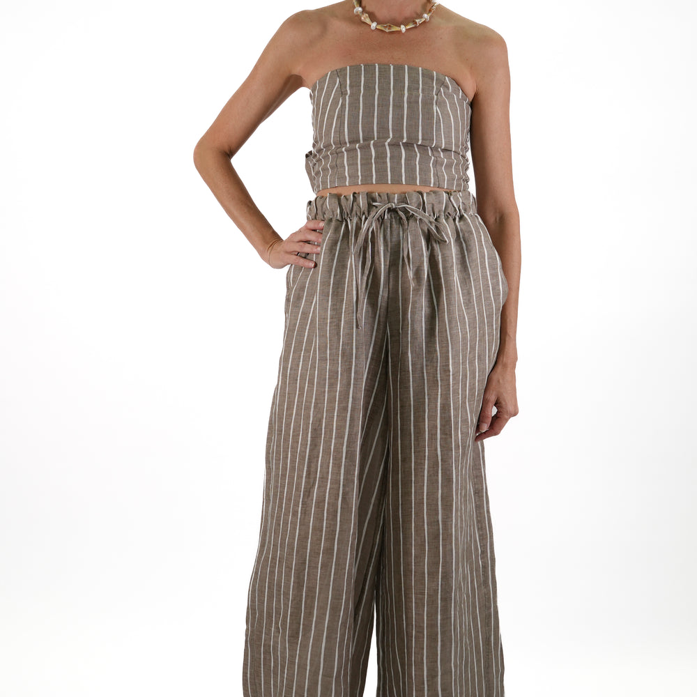 Shown with our Tie the Bown Top in Brown Stripe Linen