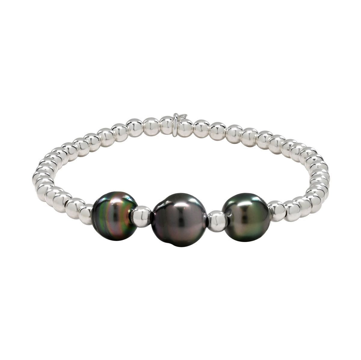 Features three Tahitian pearls and sterling silver beads