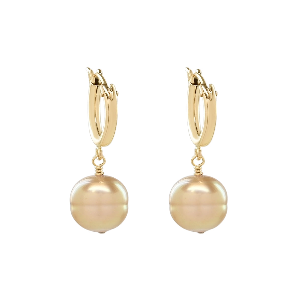 Each earring features one naturally colored golden South Sea pearl