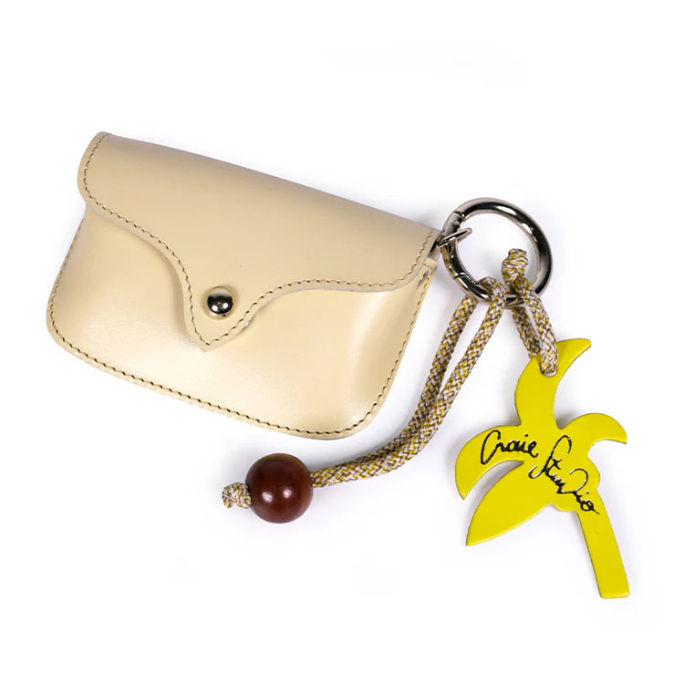 Original and full of freshness, its ring is decorated with climbing cord, embellished with a wooden bead and a yellow leather palm tree stamped Craie Studio, a playful and distinctive signature.